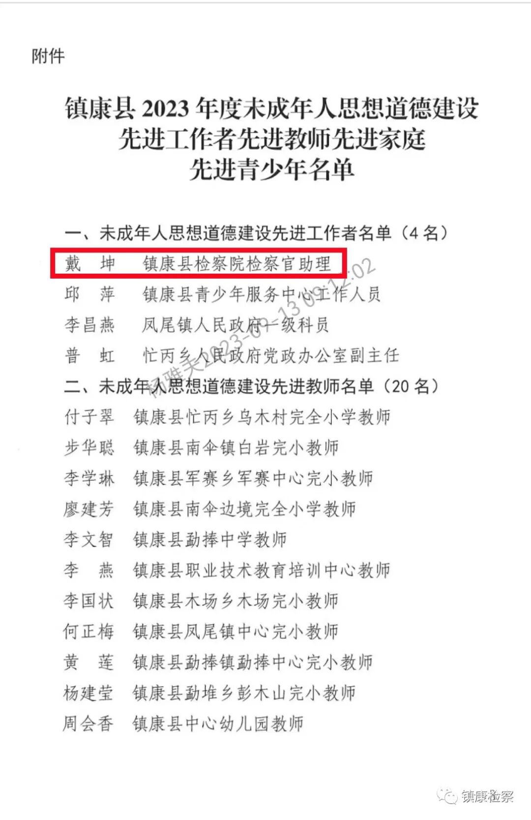 【喜报】我院干警荣获镇康县2023年度未成年人思想道德建设先进工作者称号