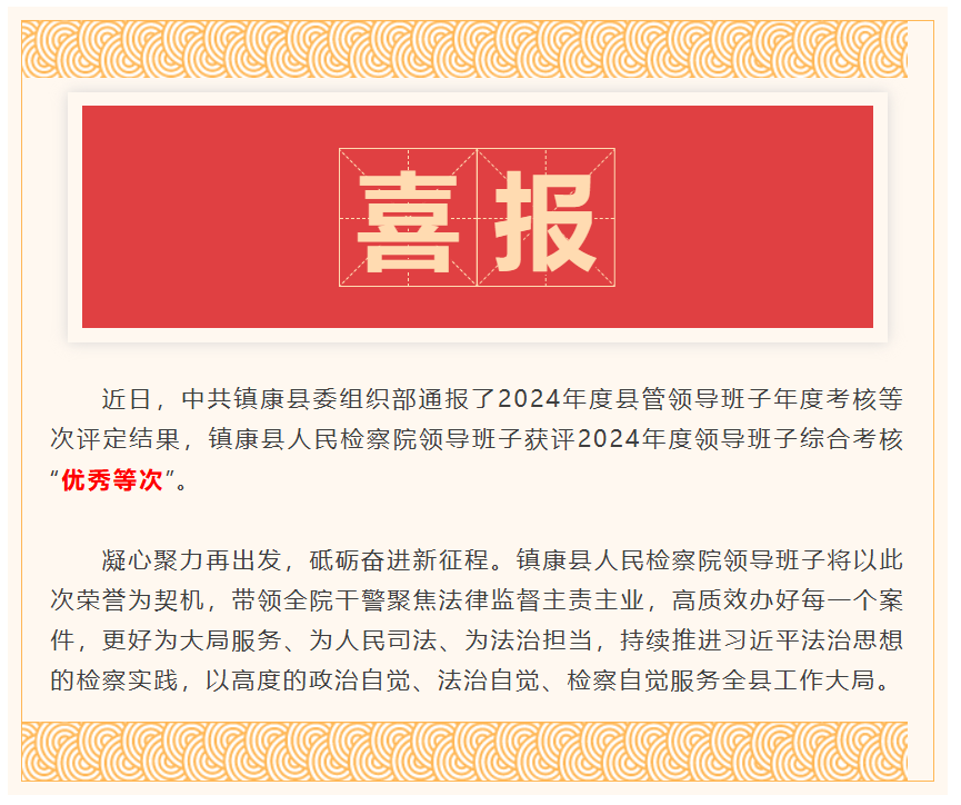 【喜报】镇康县人民检察院领导班子获评2024年度“优秀”等次