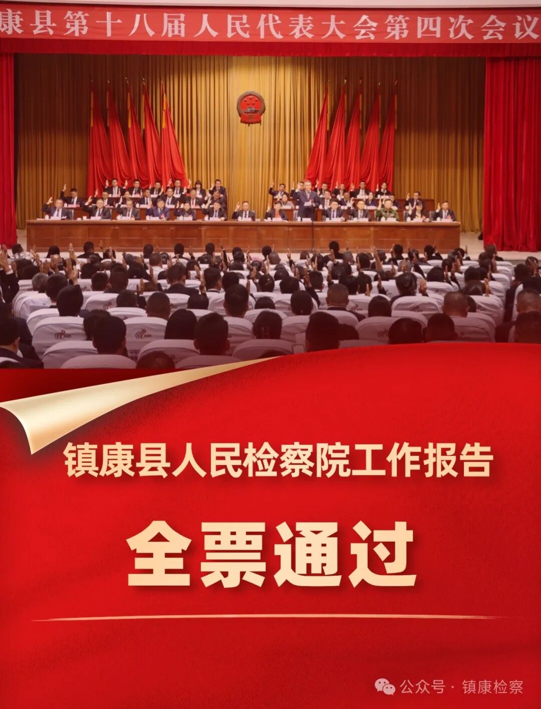2月26日下午,在镇康县第十八届人民代表大会第四次会议上,经会议表决,镇康县人民检察院工作报告获全票通过!